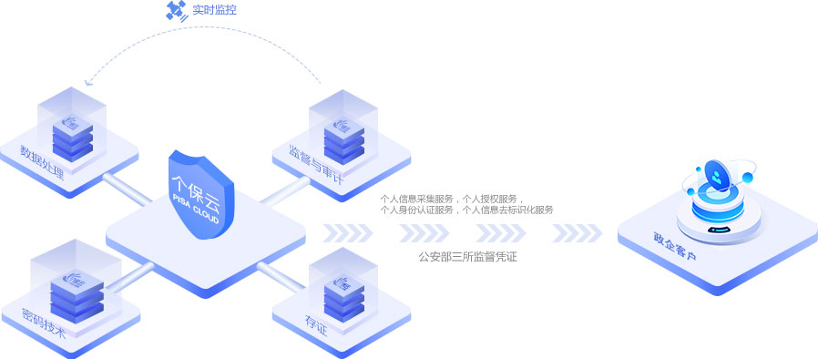 公安部第三研究所对PISA CLOUD个保云服务中的个人信息处理过程进行数据安全监督与审计,实现多维度、嵌入式、全过程的安全监督与审计分析,确保数据处理过程可追溯、 可证明、可审计。